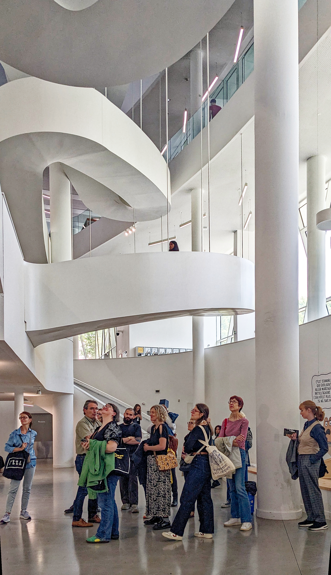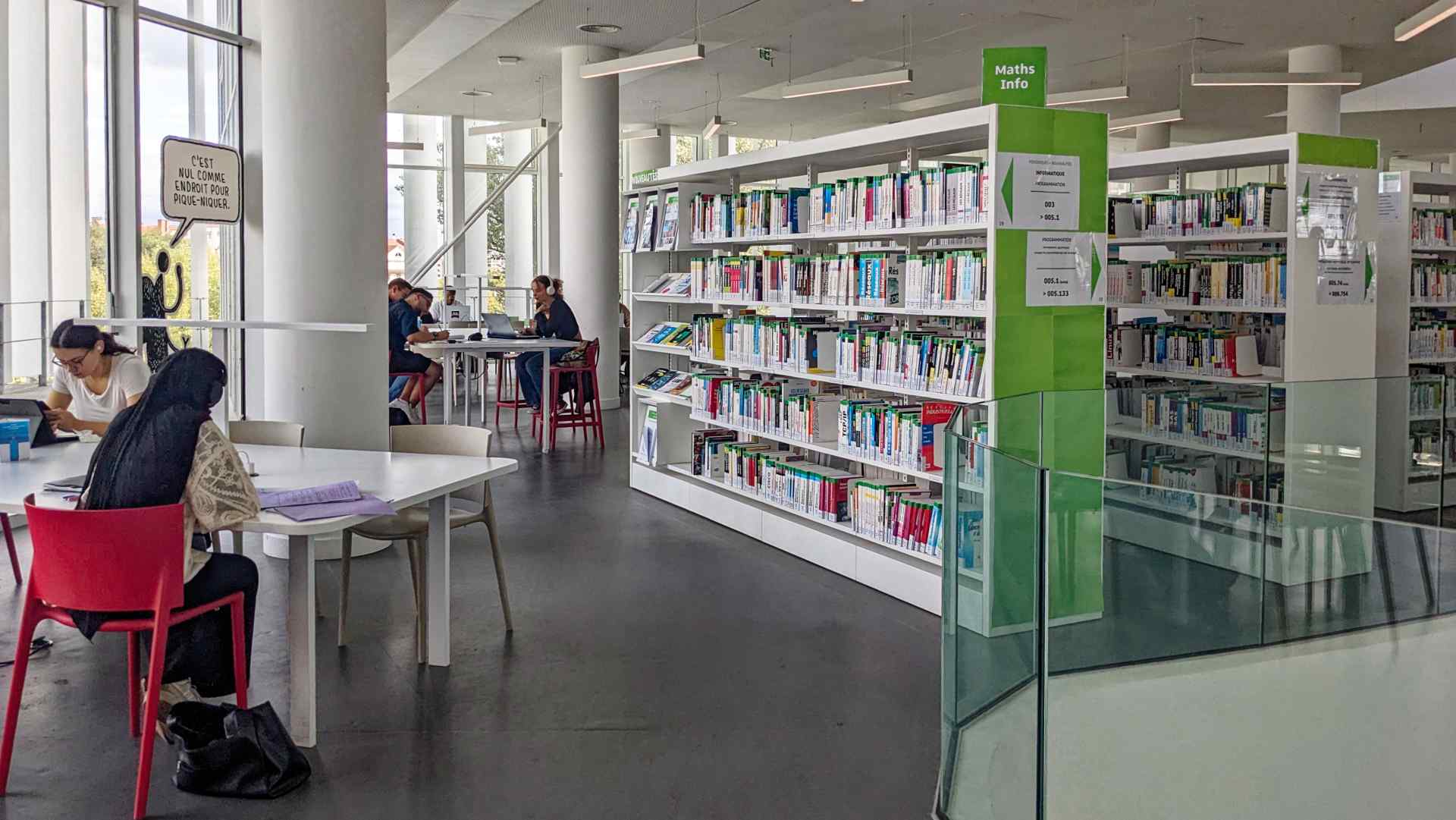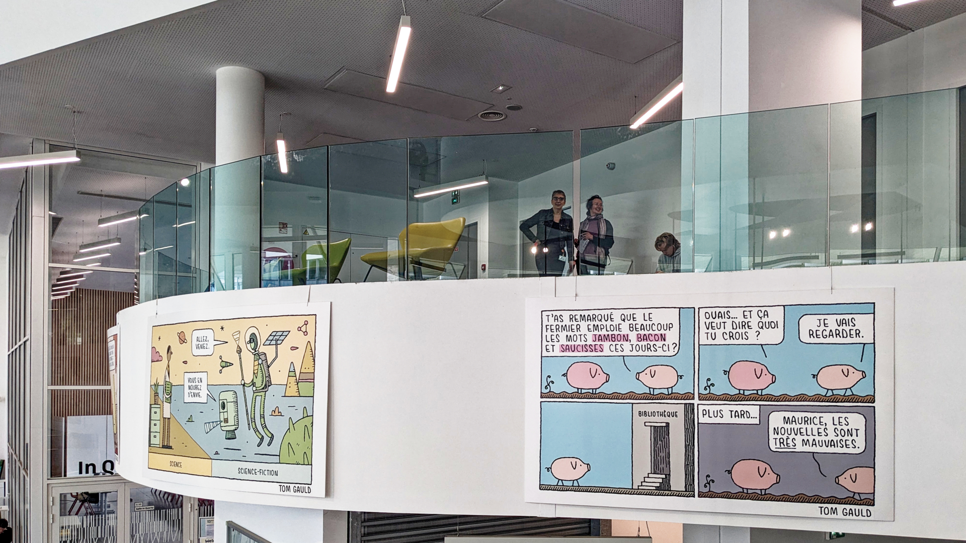 De cette visite, nous retiendrons le fort travail sur l’accessibilité, l’exposition de Tom Gauld offrant une touche d’humour et de couleur dans l’ensemble du bâtiment, mais aussi des enjeux très concrets (gestion du froid, du bruit…) et actuels (salles de confinement en cas d’attaque terroriste).