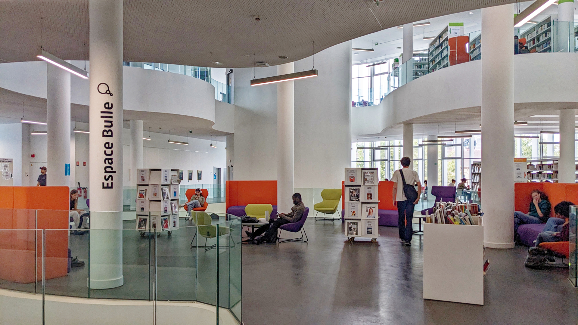 Ce ne sont pas les collections qui sont au cœur de son fonctionnement, mais bien les usagers ! Dans le hall, peu de livres en vue mais une scène ouverte, une salle commune, des jeux de société et un espace jeux vidéo.