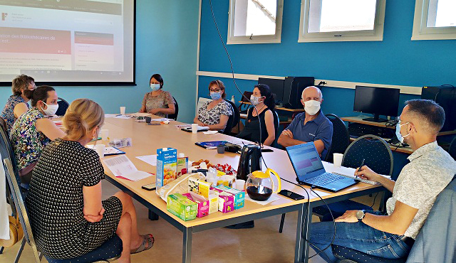 La matinée a été riche en échanges. Chacun a évoqué son ressenti vis-à-vis de la pandémie : quelles difficultés les bibliothèques ont-elles rencontrées ? Mais aussi, quelles stratégies ont-elles développées ? En effet, la situation a conduit à réfléchir à de nouvelles façons de travailler. Peut-être garderons-nous des idées lorsque la crise sanitaire sera passée comme le click-and-collect, bien utile pour les lecteurs pressés ? Tous espèrent reprendre leur rythme de croisière à la rentrée de septembre.